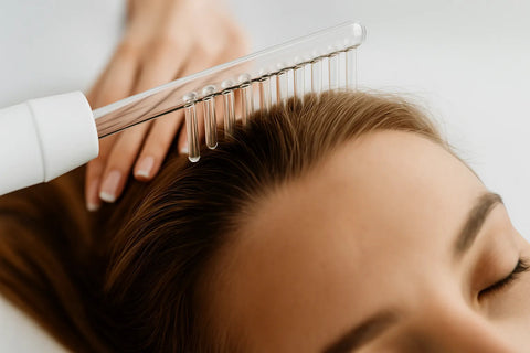 La tecnología de alta frecuencia estimula los folículos capilares que han dejado de producir cabello debido a la genética. Esto ayuda a frenar la progresión de la calvicie hereditaria y a reactivar el crecimiento